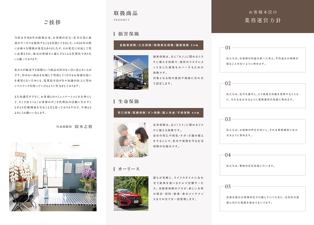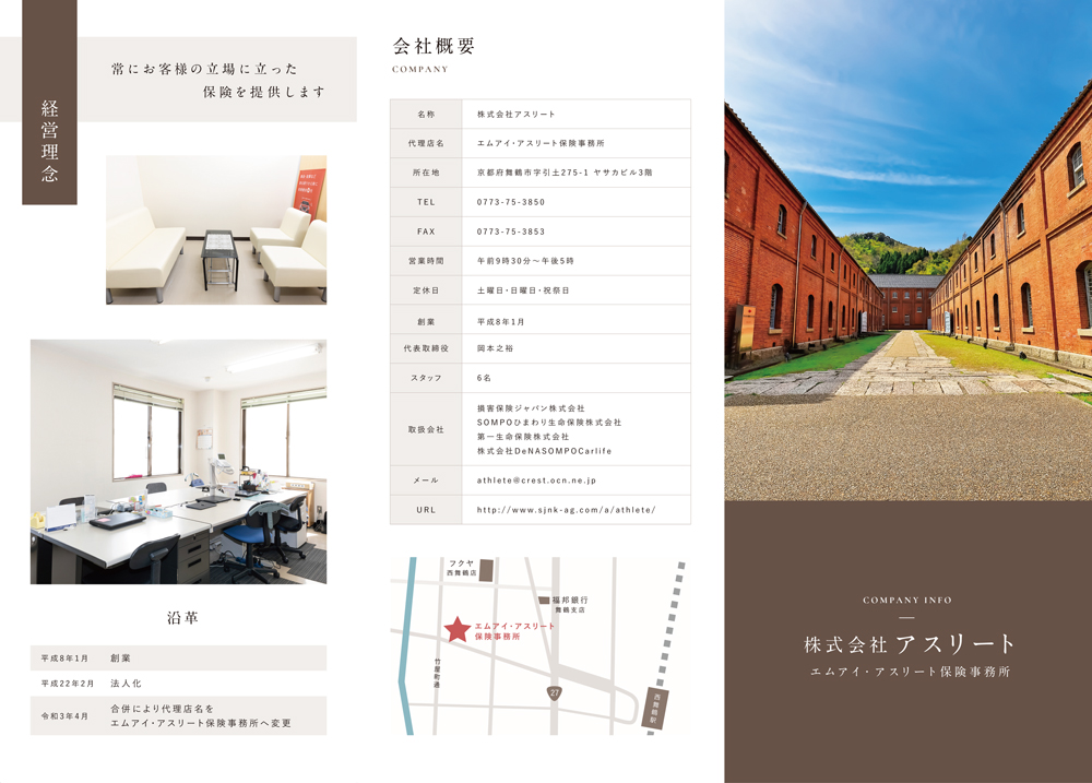 2021.06.12 パンフレット リーフレット制作【エムアイ・アスリート保険事務所様(京都府舞鶴市)】 cotonoha-design Client:エムアイ・アスリート保険事務所 Category:パンフレット Service:構成・デザイン(A4両面/巻き三つ折り) Area:京都府舞鶴市 制作内容やデザインのこだわり等についてはブログにまとめています▼ あわせて読みたい【制作実績】エムアイ・アスリート保険事務所様リーフレット|京都府舞鶴市の保険代理店 ABOUT ME コトノハデザイン 岡本 佳菜子フリーランスWebデザイナーInstagram京都府福知山市を拠点に活動するフリーランスWebデザイナー。 制作会社で10年間Webデザイナーとして勤務し 2020年にフリーランスとして独立。